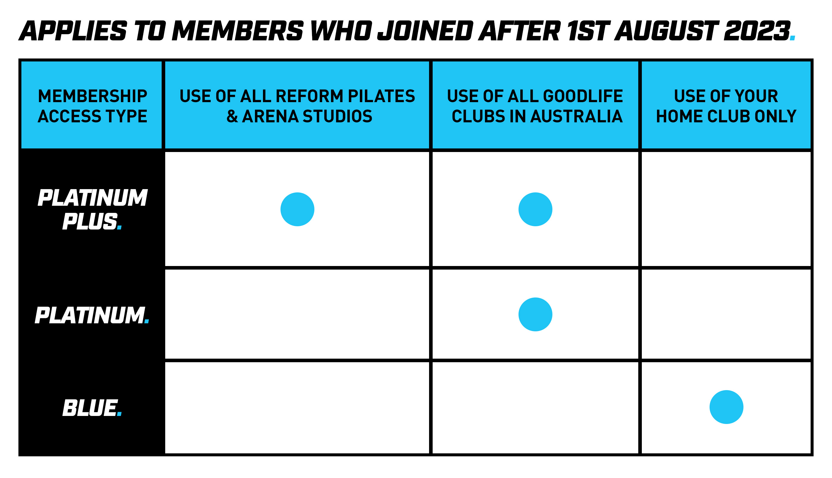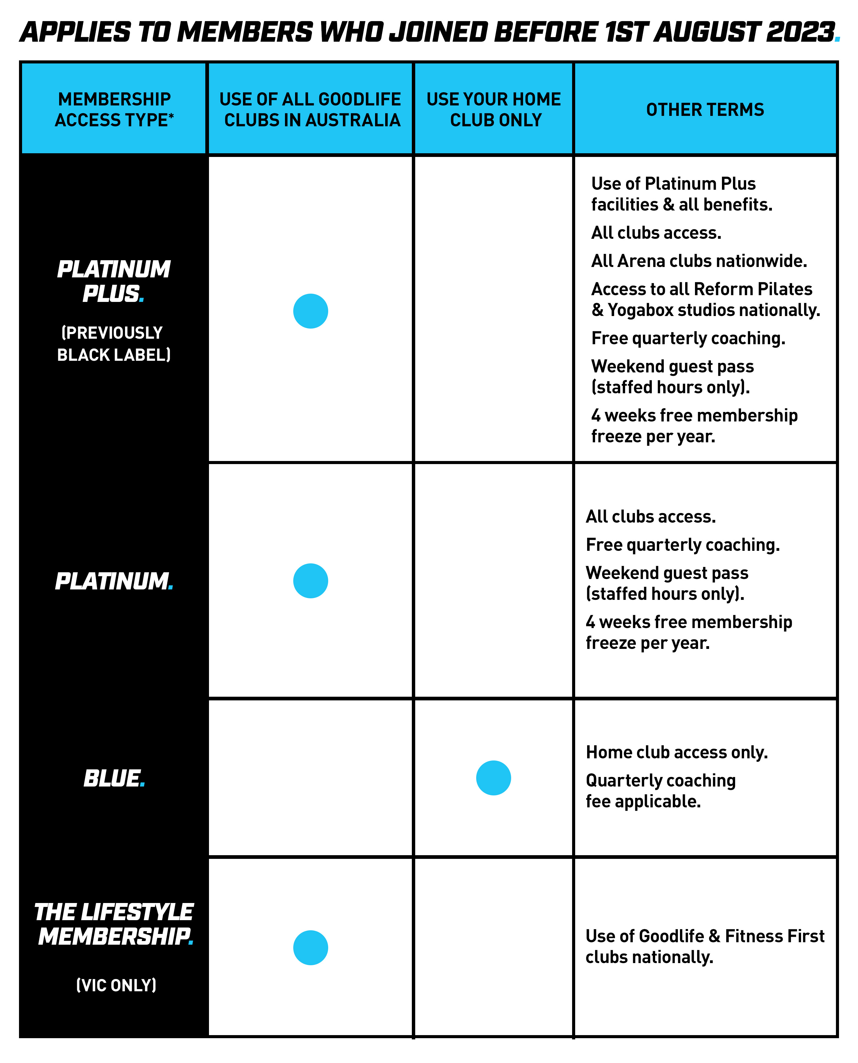 The following access benefits apply to members who join on or after 1st August 2023: