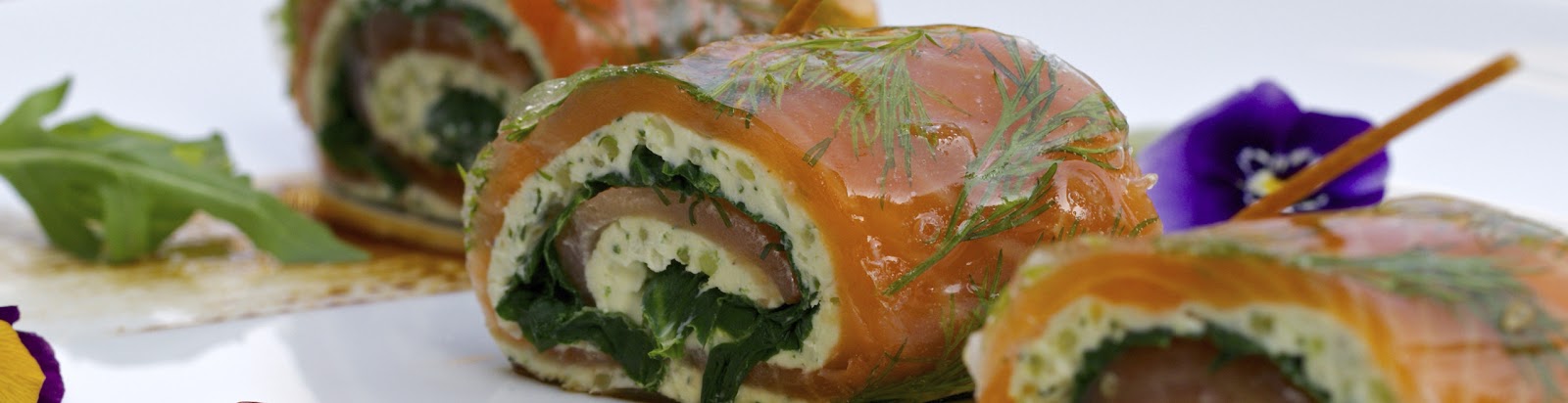 Place zucchini on a board, lay salmon on top and spread cottage cheese mixture onto the salmon. Roll zucchini and salmon to form a roll. Repeat until all ingredients have been used and garnish with remaining lemon and dill.